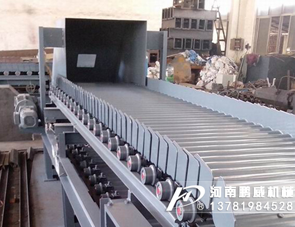 6、下托輥是由支承、密封圈、滾動軸承、軸、滾輪、壓蓋等件組成,主要用來支承回空槽板,防止因鏈板自重而產生過大的撓度而影響正常運行